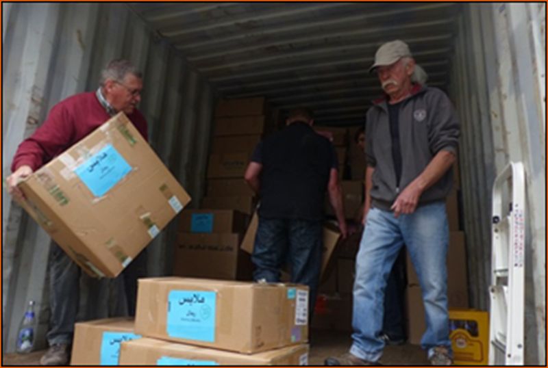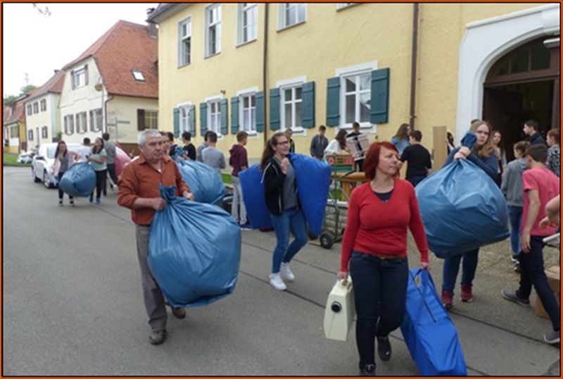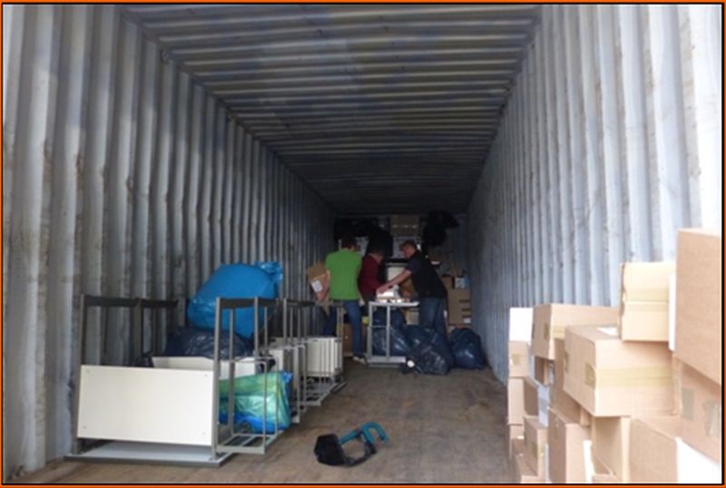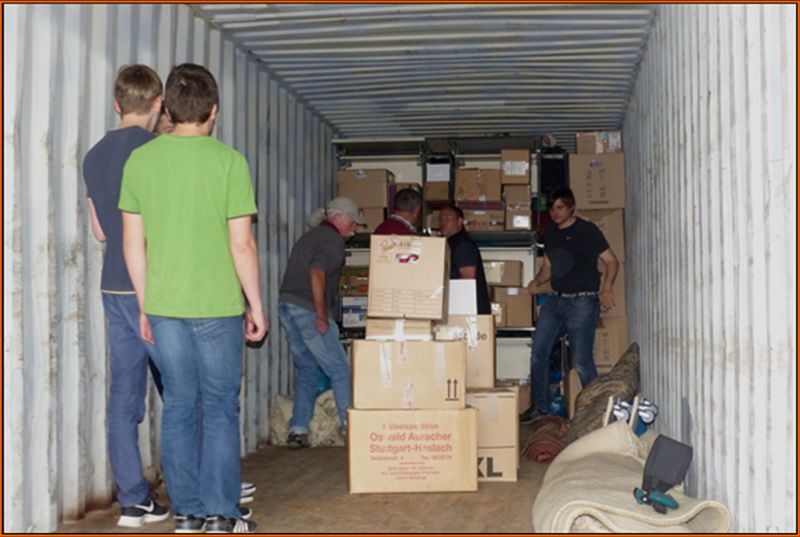 Niemand äußerte sich negativ, als dann fünf Tage später immer noch alles so da stand; im Gegenteil: man betonte die verbesserte Raumakustik: „es hallt nicht mehr so!“ Die für ein zügiges Beladen des Containers so notwendige Ordnung der bereitgestellten Gaben wurde von allen – ausnahmslos- respektiert. Kein Kartonstapel wurde in den Pausen zu Fall und auch kein Plastiksack zum Platzen gebracht. Das gilt es wirklich zu erwähnen – jeder möge sich darüber freuen !!! Und ganz in diesem Sinne ging auch das Beladen des Containers vonstatten.