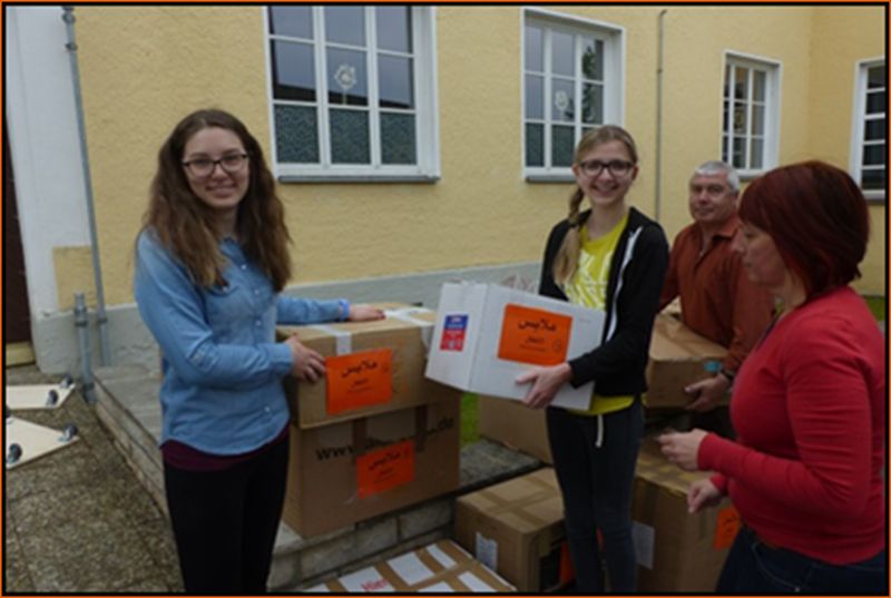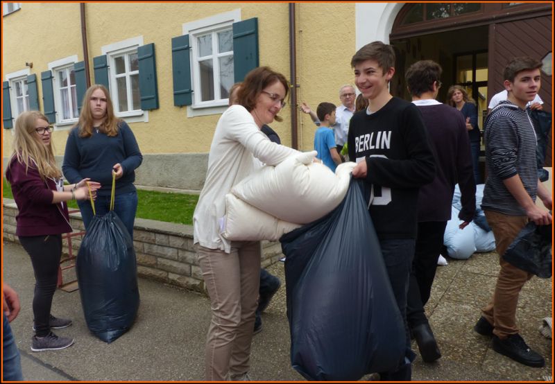Denn e n d l i c h nach vielen Telefonaten (Spedition in München / Reederei in Hamburg / Pater Ghoneim in Wien )bekamen wir unseren ‚Containertermin‘ glücklicherweise doch noch vor den Pfingstferien eingeräumt: Donnerstag, den 12. April 2016 sollte also der Container um 8 Uhr vor der Schule stehen – das sagte man uns am Mittwoch um 16 Uhr. Na toll – wie sollte das funktionieren! Es funktionierte!!! Helfer kamen in der Früh gegen sechs Uhr, um wenigstens eine gewisse Zeit v o r der Arbeit zu helfen, andere kamen so früh es ging, Frau Reitmaier saß noch früher als sonst im Auto, Schüler packten unaufgefordert an, um vieles schon einmal vor das Schulgebäude zu tragen – griffbereit zum Einladen.